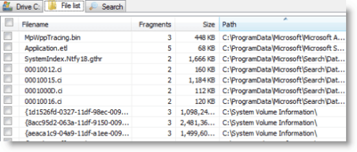 2. Click on the File list tab, you will be shown a list of fragmented files.