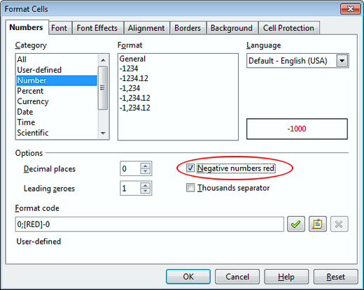If you do a lot of financial or accounting calculations with Calc you likely make use of negative numbers. Sometimes it can be easy to miss the negative sign at the beginning of the numbers and end of treating the number as positive. Select a cell or group of cells that contain negative numbers and open up the Format Cells window. Locate and select the option labeled Negative Numbers Red.