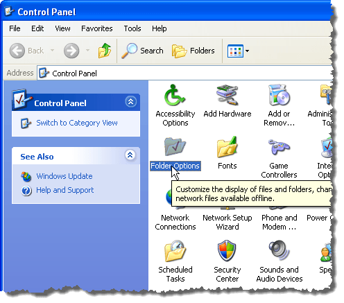 Click the Folder Options link (single-click, not double-click, as in Windows XP).